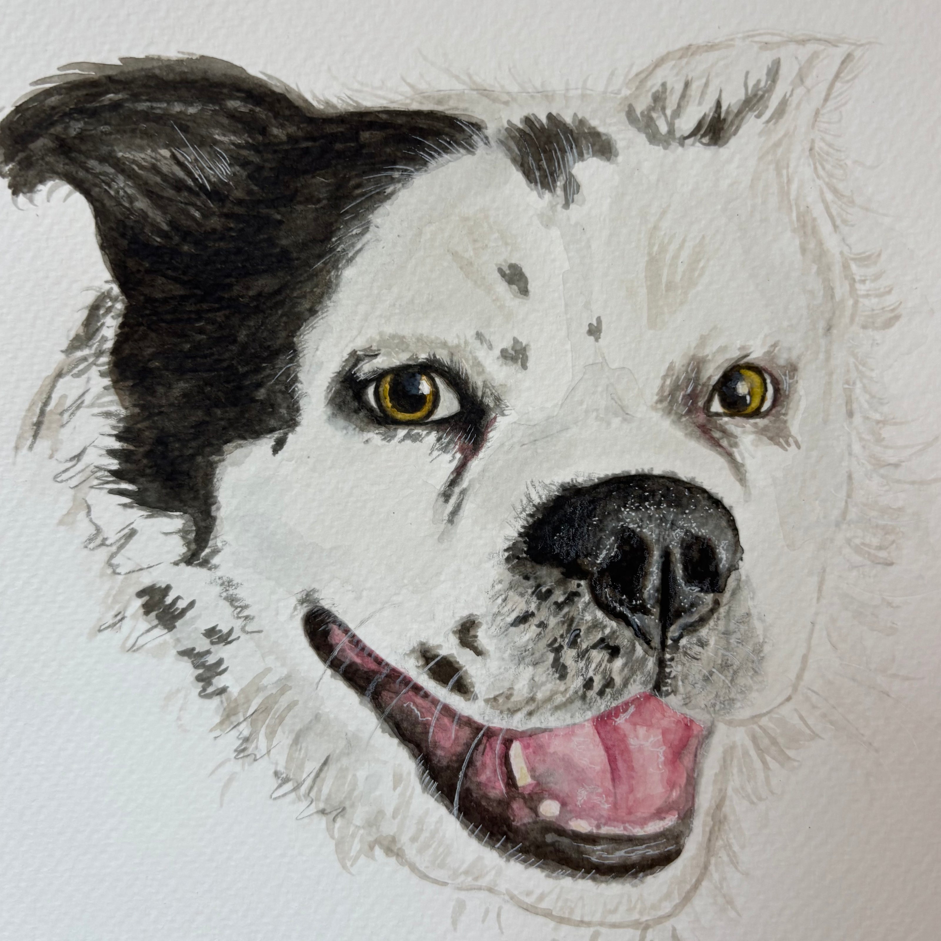 I'm offering A4 hand-painted watercolour pet portraits for £50, including tracked postage at a special reduced rate to build my portfolio! Whether it's a dog, cat, hamster, or any other beloved pet, I'll create a unique piece of art to capture their personality and charm.